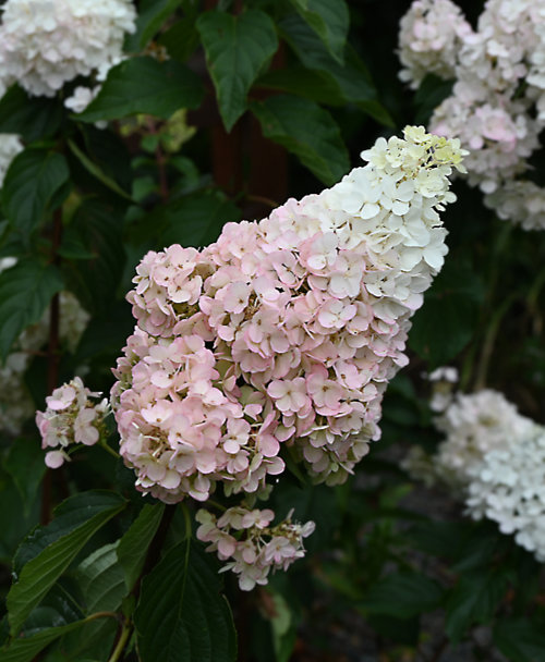 Panicle Hydrangea (Hydrangea paniculata) – The late-blooming panicle-type hydrangeas are very late to leaf out. This type of hydrangea can also be cut back as much as you want in the spring. They bloom on new wood.